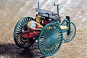 Mit diesem Busch-Modell beginnt die Automobil-Geschichte auch im Maßstab 1:87. Diese filigrane Miniaturausgabe in hochdetaillierter Ausführung zeigt das erste mechanische Fortbewegungsmittel mit beachtenswerten Besonderheiten: Räder mit superfeinen Speichen. Filigrane Karosse, über 23 Einzelteile. Präsentiert wird das Modell auf einem Holzsockel mit feinbedruckter Kunststoffhaube.