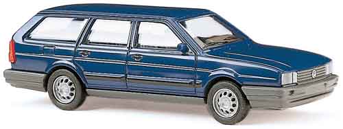 | Formneuheit 1997. Modell-Details: Eingesetzte Scheinwerfer und Rückleuchten, feiner Druck der Scheibenwischer, Türgriffe und Zierleisten. Artikel-Nummer des Grundmodells: 48100 Im Mai 1973 stellt Volkswagen mit dem Passat eine neue Modellgeneration vor. Er ist weitaus eleganter und in jeder Hinsicht moderner als sein Vorgänger der VW 1600. Sowohl technisch als auch äußerlich basiert der neue Mittelklassewagen auf den im Vorjahr erschienenen Audi 80 von der Konzerntochter Audi-NSU. Der einzige Unterschied war im wesentlichen nur das Fließheck. Die ersten Krosserievarianten sind der Zweitürer und der Viertürer und der Kombi. Innerhalb des Konzerns macht sich Volkswagen das sogenannte Baukastenprinzip zunutze, was bedeutet, daß eine Vielzahl von Einzelteilen in den Modellen von VW und Audi eingebaut werden. Dadurch können große Serien preisgünstig gefertigt werden. Nach vier Jahren wird die Karosserie facegeliftet, dabei aber nur in wenigen Details verändert. 1981 präsentiert VW eine neue Generation des Passats. Im Vergleich zu seinem Vorgänger sind die größeren Abmessungen (7 cm breiter und 15 cm länger) und die sachliche Formgebung (cw-Wert 0,38) auffallend. Somit rückt der Passat etwas weiter von seinem Bruder, dem Audi 80, ab und ist auch äußerlich ein eigenständiges Modell. Das Facelift der zweiten Passatgeneration kommt 1985 mit der internen Typenbezeichnung 32B. Auffallendste Veränderungen der Karosserie waren der neue Kühlergrill mit minimal geänderten Scheinwerfern, zusätzliche Zierleisten an den Seiten und größere bzw. nach unten gezogene Stoßstangen. Erstmalig wurde mit der neuen Karosserie auch ein Allrad-Passat unter dem Namen »Synchro« angeboten. Mit einer Ladekapazität von 1830 Litern entwickelte sich der VW Passat zu einer sehr beliebten Mittelklasselimousine, nicht nur für Familien. Insgesamt wurden von dem Passat der ersten und zweiten Generation von 1973 -1988 4,2 Millionen Fahrzeuge verkauft. |