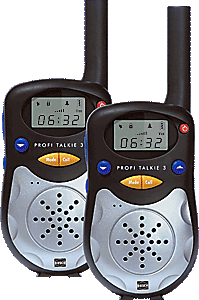 Zwei professionelle Funksprechgeräte für die mobile, gebührenfreie Kommunikation. Durch unkomplizierte Bedienung, exzellente Sprachübertragung, robustes Gehäuse und Reichweiten bis 5 km* werden diese Walkie Talkies zu unentbehrlichen Begleitern für alle Gelegenheiten: Wandern, Skilaufen, Trekking, Segeln, Spielen, Camping, Sport usw. 304 Kanalwahlmöglichkeiten (8 Hauptkanäle mit jeweils 38 Subcodes) stehen für ungestörtes Senden und Empfangen zur Verfügung. Durch die praktische Vox-Funktion (automatische Sprachsteuerung) bleiben die Hände frei: Sobald gesprochen wird, sendet das Gerät automatisch. Daher ist das Profi Talkie 3 bedingt auch als Baby-Sitter oder für andere Raumüberwachungsfunktionen einsetzbar. Mit dem »Kanal-Scanning« kann geprüft werden, ob auf einem Kanal ein anderer Benutzer sendet. Durch die elektronische Tastensperre wird verhindert, dass programmierte Einstellungen versehentlich verändert werden. Das Profi Talkie 3 kann auch mit anderen Funksprechgeräten, die dem PMR-Standard entsprechen, kombiniert werden. Lieferung